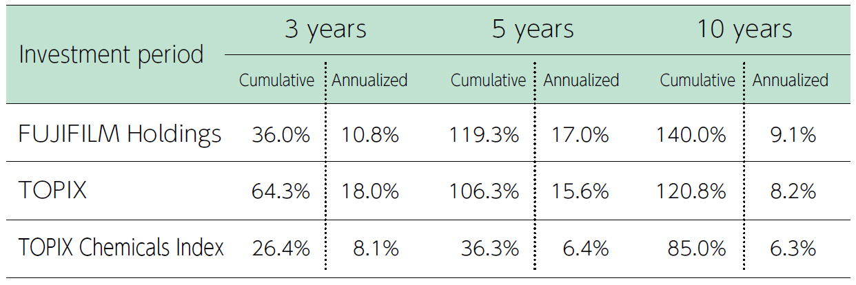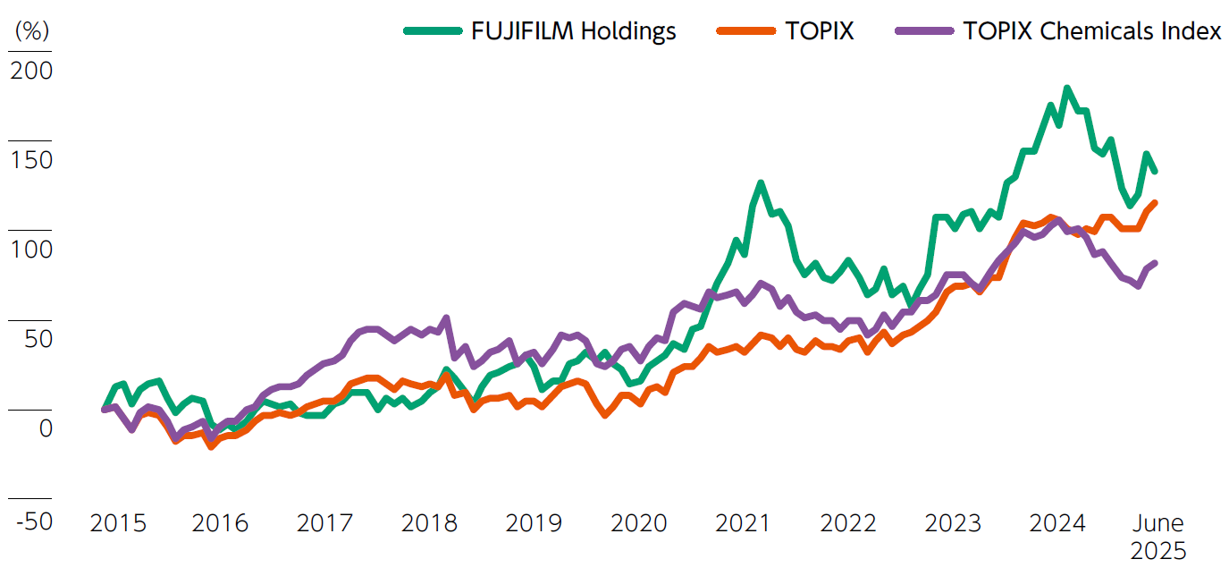 Our total shareholder return (TSR) has outperformed the TOPIX Index and the TOPIX Chemicals Index over the past five and 10 years. However, our price-to-book ratio (PBR) stood at just above 1x as of the end of June 2025, indicating that there is still ample room for improvement. To that end, it is essential that we advance the initiatives outlined above throughout the VISION2030 period. We will continue transforming our business portfolio to maintain an optimal balance while creating new growth areas from short-, medium- and long-term perspectives. At the same time, we will engage in thoughtful dialogue about these initiatives with stakeholders, including shareholders and other investors. Through these efforts, we aim to foster strong empathy and expectations for our future growth.