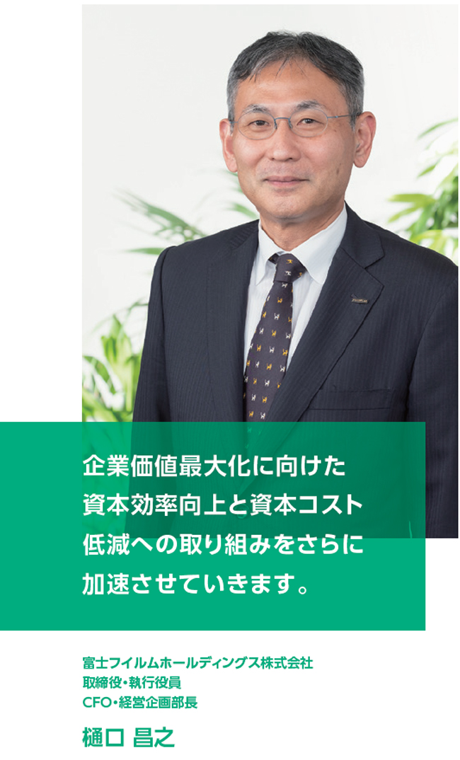 2024年度は、VISION2030の計画におけるバイオCDMO事業を中心とした中長期の成長のための設備投資がピークを迎えた期でもあり、2026年度からはこれらの投資が全社フリーキャッシュ・フローの黒字化に結実していく見通しです。こうしたことから当社は、かねて注力してきた収益性と資本効率を重視した経営により富士フイルムグループの企業価値を高める取り組みをさらに加速するステージに入ったと認識しています。資本コスト低減の視点も加えた取り組みを、VISION2030の各施策と連動させながら加速することで、「稼げる力」を向上させ、「稼げる会社」に進化させていきます。